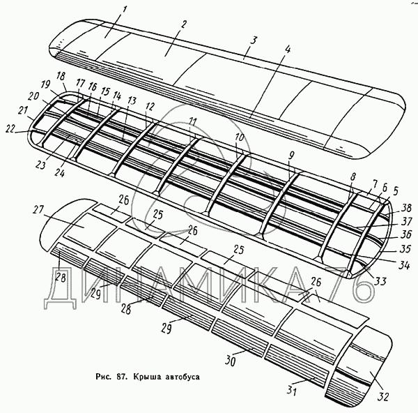 Перечень комплектующих от Крыша автобуса на ЛиАЗ 677