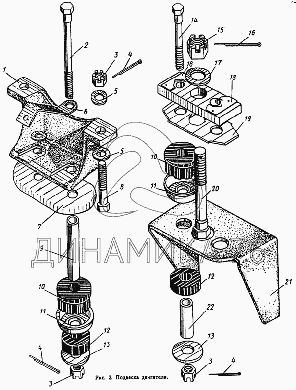 Перечень комплектующих от Подвеска двигателя на ЛиАЗ 677