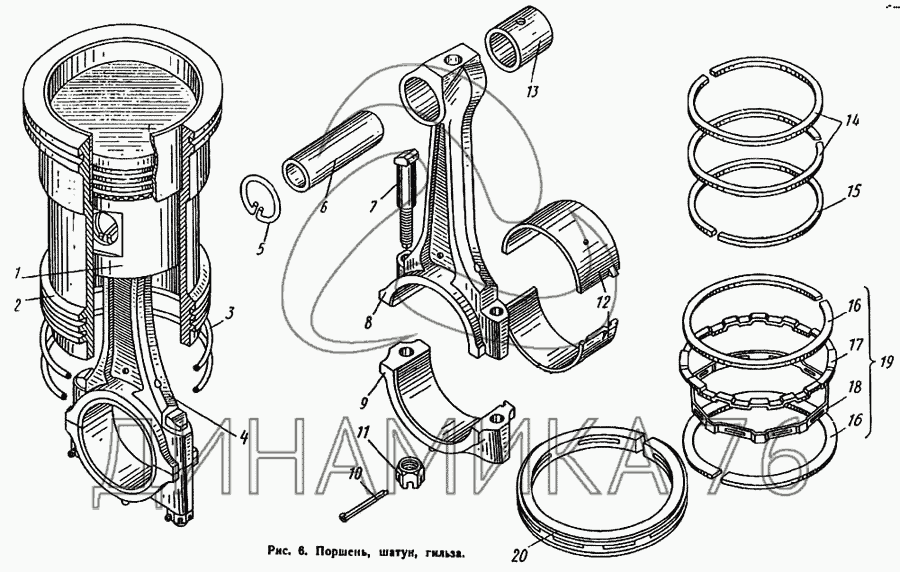 Поршень, шатун, гильза — ЛиАЗ 677: