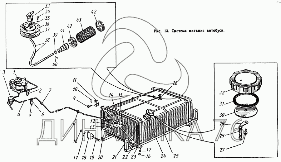Перечень комплектующих от Система питания автобуса на ЛиАЗ 677