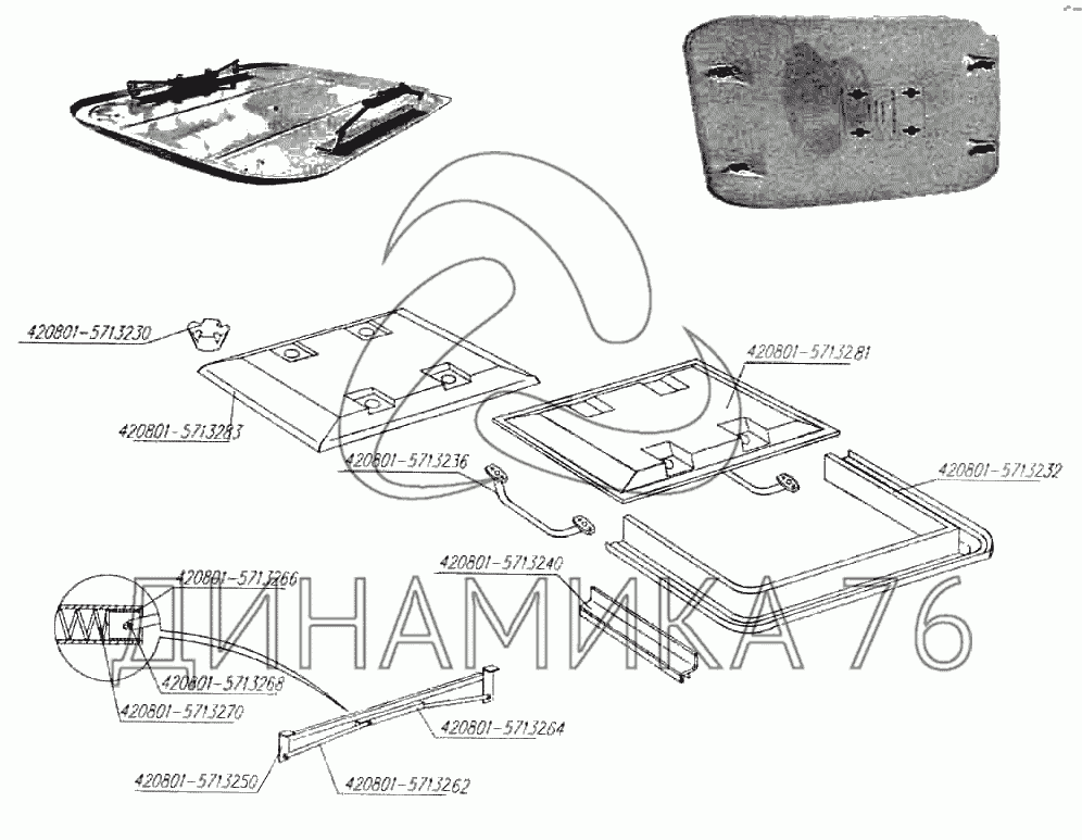 Схемы запчастей предназначены для справочных целей! Мы продаем не все запчасти от Аварийно-вентиляционный люк на 5299-01 (надстройка), представленные в этом списке.