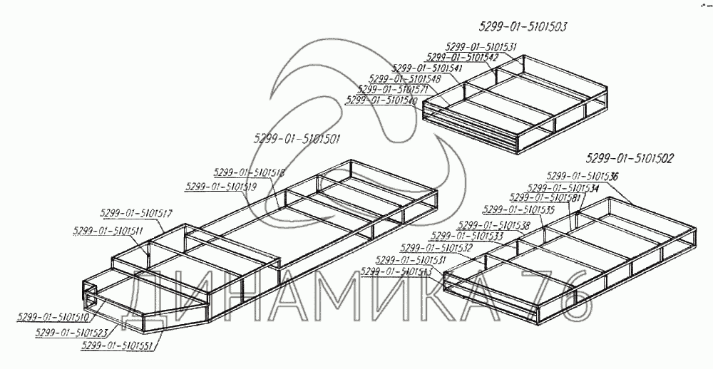 Перечень комплектующих от Каркас подиума правый на 5299-01 (надстройка)