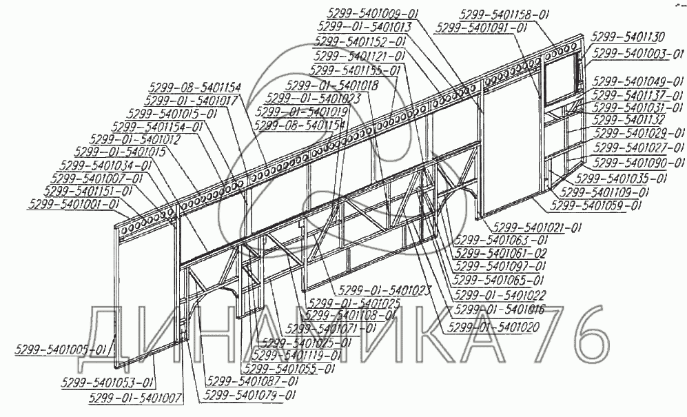 Схемы запчастей предназначены для справочных целей! Мы продаем не все запчасти от Каркас правой боковины на 5299-01 (надстройка), представленные в этом списке.