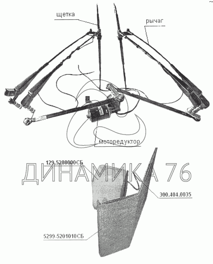 Перечень комплектующих от Стеклоочистители и стеклоомыватель на 5299-01 (надстройка)