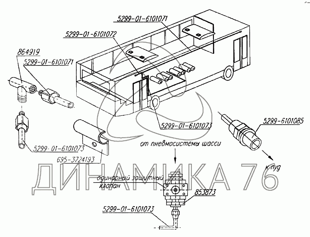 Перечень комплектующих от Установка пневмосистемы к ПУД на 5299-01 (надстройка)