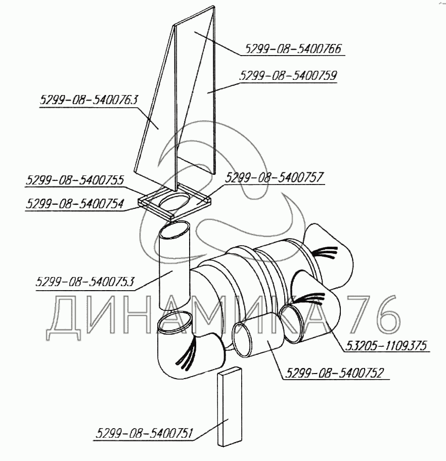 Перечень комплектующих от Система питания воздухом на 5299-08 (надстройка)