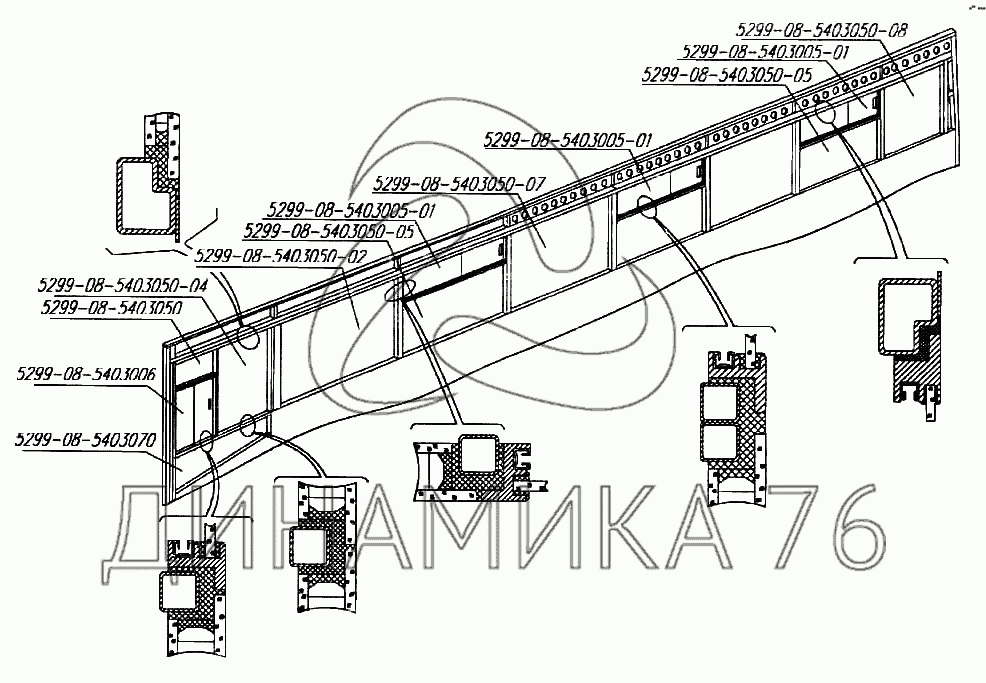 Схемы запчастей предназначены для справочных целей! Мы продаем не все запчасти от Установка окон левой боковины на 5299-08 (надстройка), представленные в этом списке.