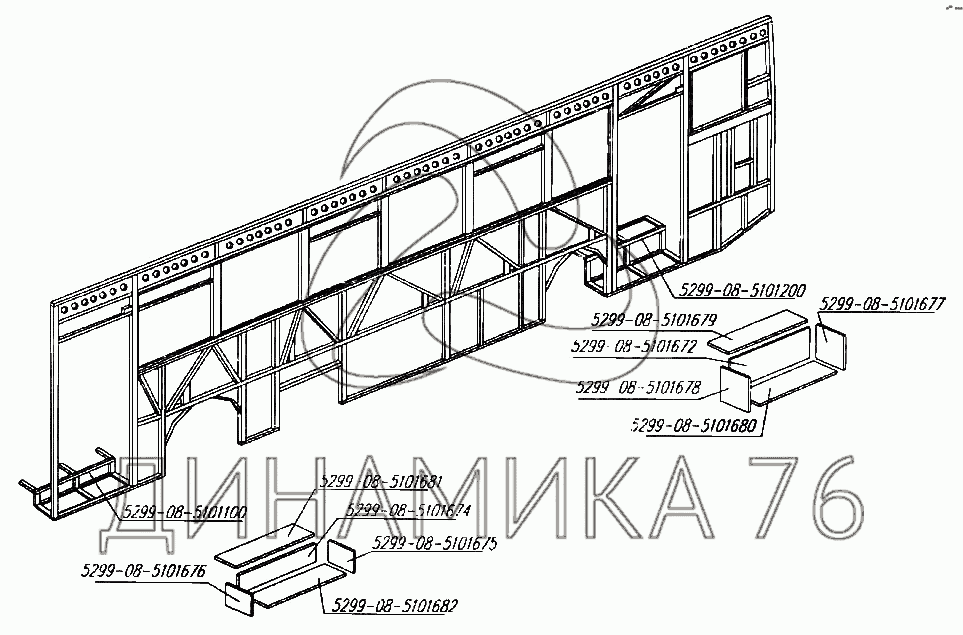 Схемы запчастей предназначены для справочных целей! Мы продаем не все запчасти от Установка подножек на 5299-08 (надстройка), представленные в этом списке.