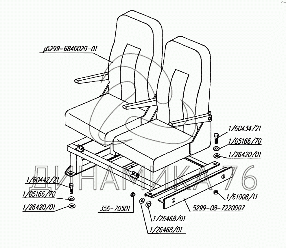 Перечень комплектующих от Установка сидений сдвоенных на 5299-08 (надстройка)