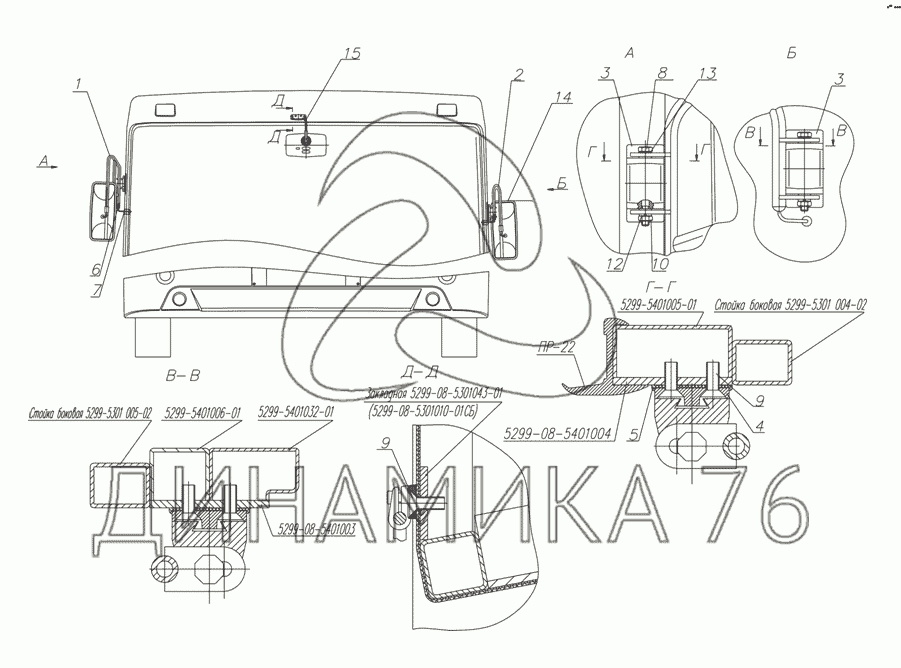 Установка зеркал на 5299-10-(11) (надстройка) (до 2008 г.)