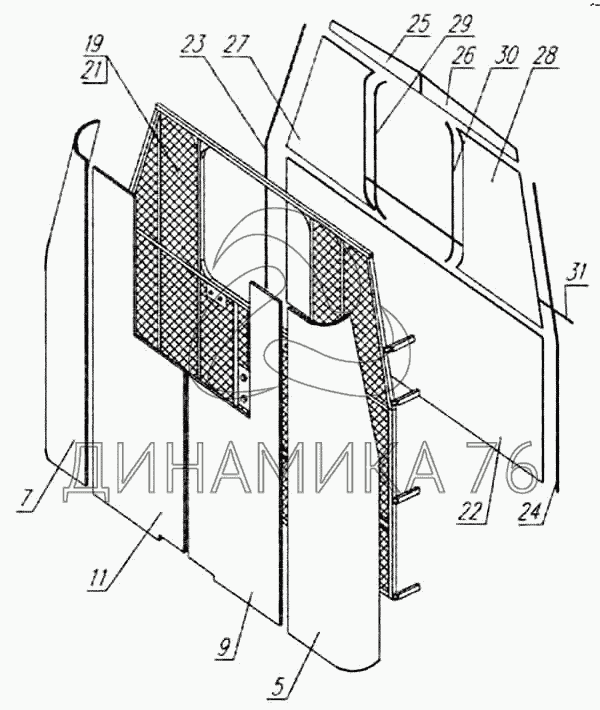 Перечень комплектующих от Установка панелей задка на НефАЗ-4208, НефАЗ-42111
