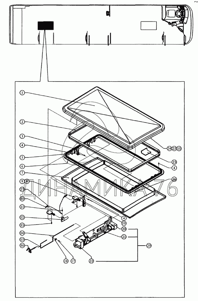 Схемы запчастей предназначены для справочных целей! Мы продаем не все запчасти от Установка аварийно-вентиляционного люка заднего на НефАЗ-52997, представленные в этом списке.