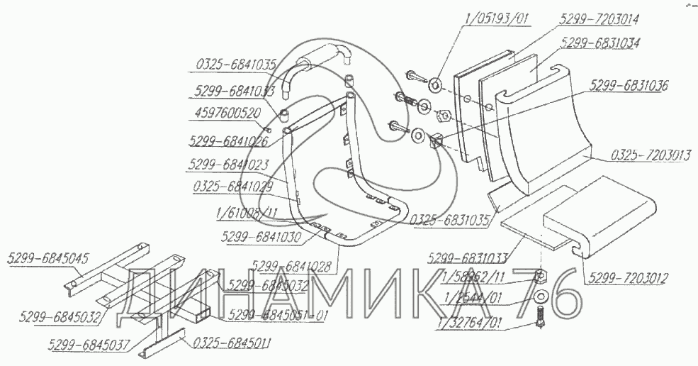 Перечень комплектующих от Сиденье одноместное на НефАЗ-5299 (надстройка)
