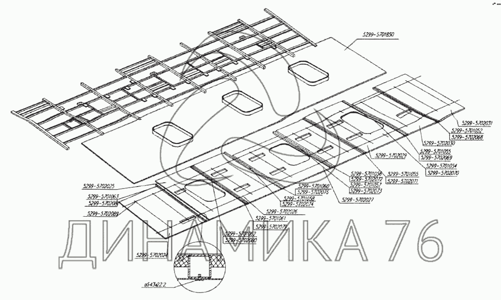 Перечень комплектующих от Установка внутренних панелей крыши на НефАЗ-5299 (надстройка)
