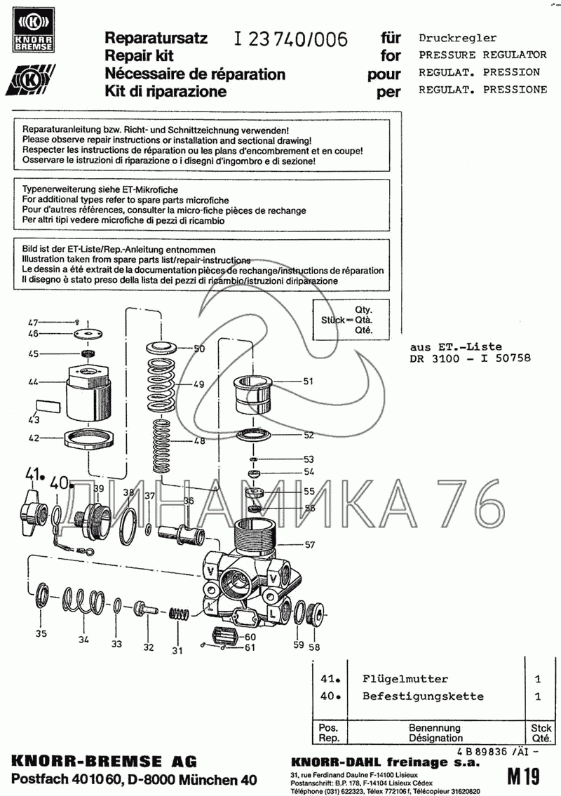 Перечень комплектующих от Кап.ремонт на KNORR-BREMSE