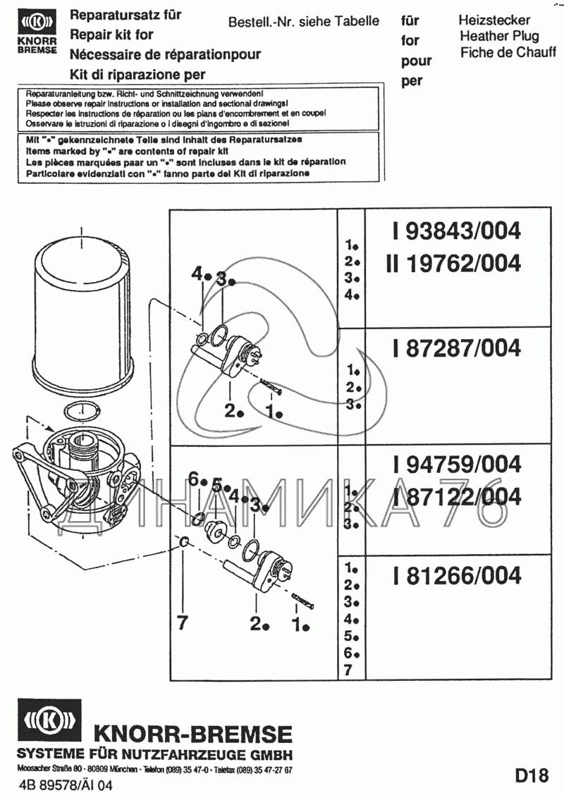 Перечень комплектующих от Отопительный элемент 24V на KNORR-BREMSE