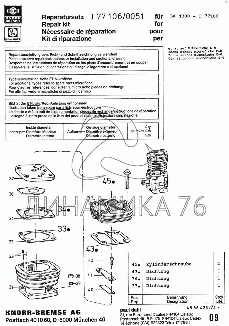 Перечень комплектующих от Прокладки головки на KNORR-BREMSE