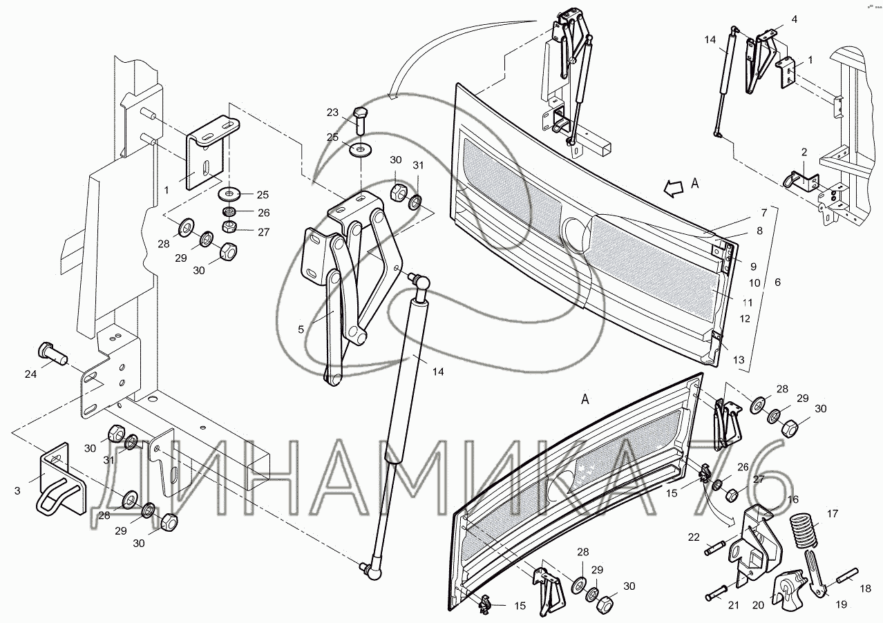 Перечень комплектующих от Установка деталей моторного люка на ПАЗ-3204