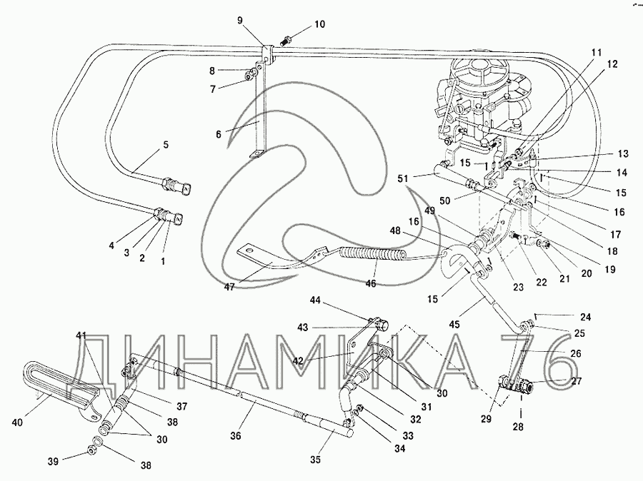 Тяга дроссельной заслонки с ручкой в сборе