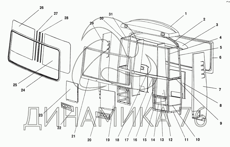 Перечень комплектующих от Задок кузова с остеклением на ПАЗ-32053