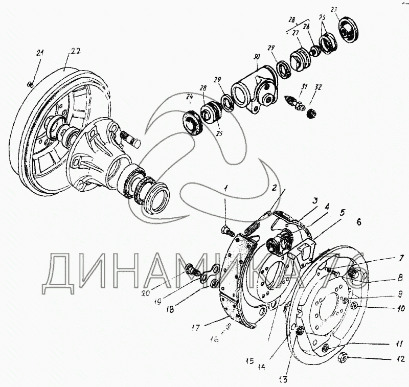 Перечень комплектующих от Тормоз передний на ПАЗ-3205-110