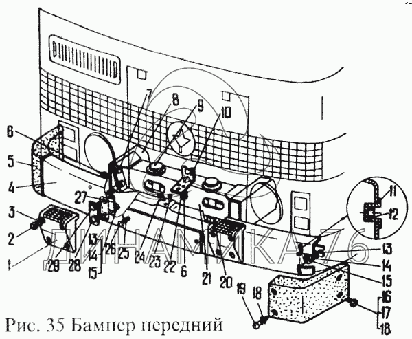 Схемы запчастей предназначены для справочных целей! Мы продаем не все запчасти от Бампер передний на ПАЗ-3205, представленные в этом списке.