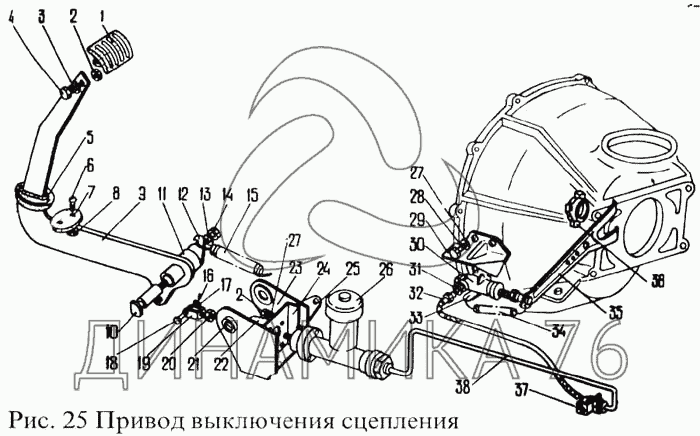 Привод выключения сцепления на ПАЗ-3205 (до 2001 г.)