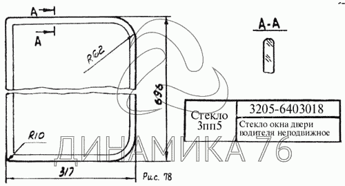 Стекло окна двери водителя неподвижное