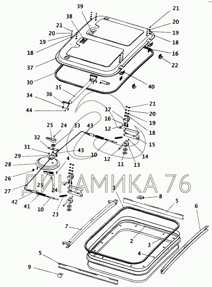 Перечень комплектующих от Люки крыши кузова на ПАЗ-4230