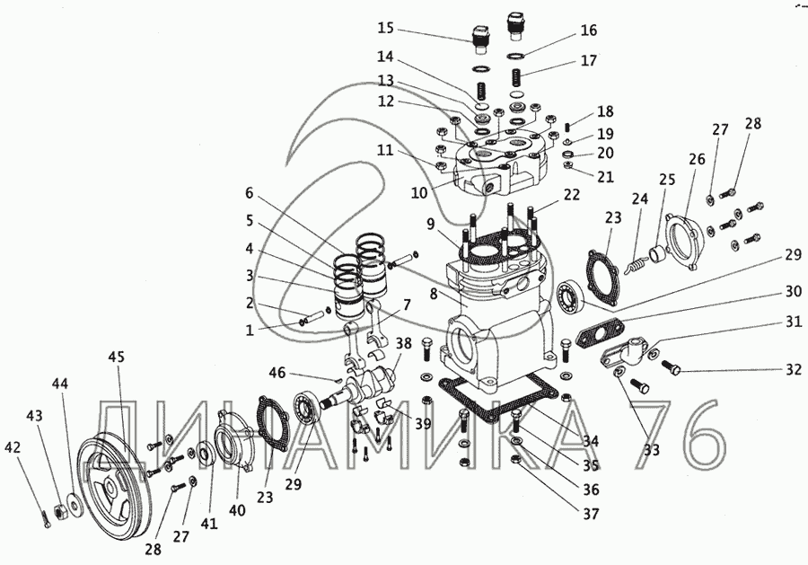 Схемы запчастей предназначены для справочных целей! Мы продаем не все запчасти от Пневмокомпрессор двухцилиндровый на ПАЗ-4230, представленные в этом списке.