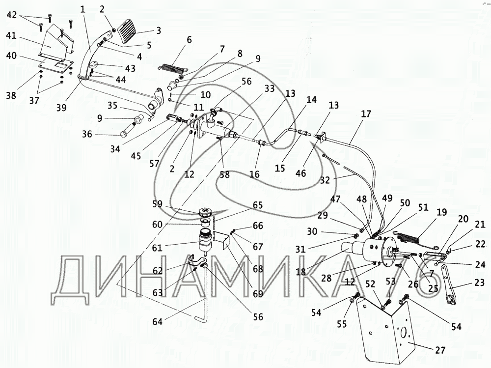 Перечень комплектующих от Привод сцепления на ПАЗ-4230