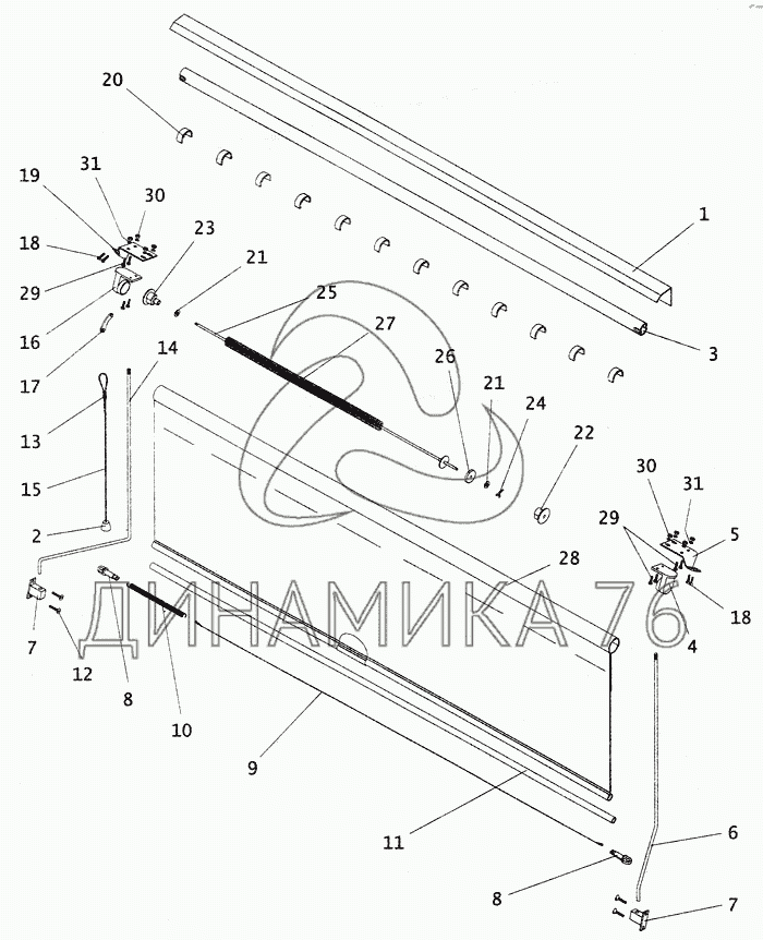 Перечень комплектующих от Шторка противосолнечная на ПАЗ-4230