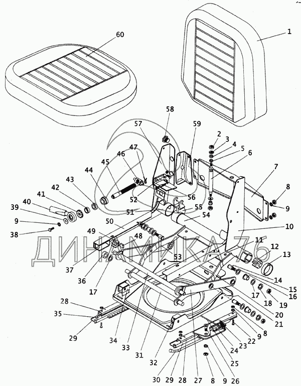 Перечень комплектующих от Сиденье водителя на ПАЗ-4230