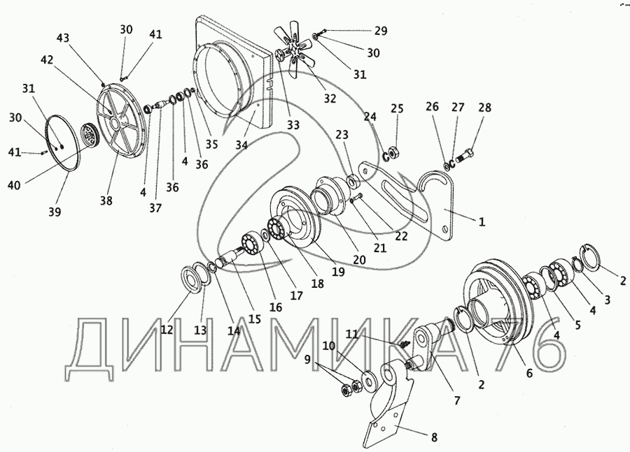 Вентилятор и его привод на ПАЗ-4230 (до 2005 г.)