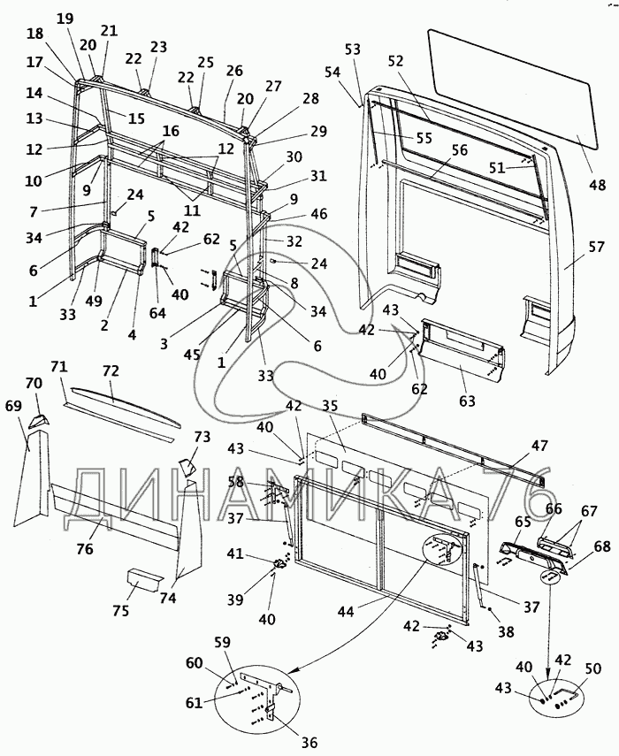 Перечень комплектующих от Задок кузова с остеклением на ПАЗ-4230
