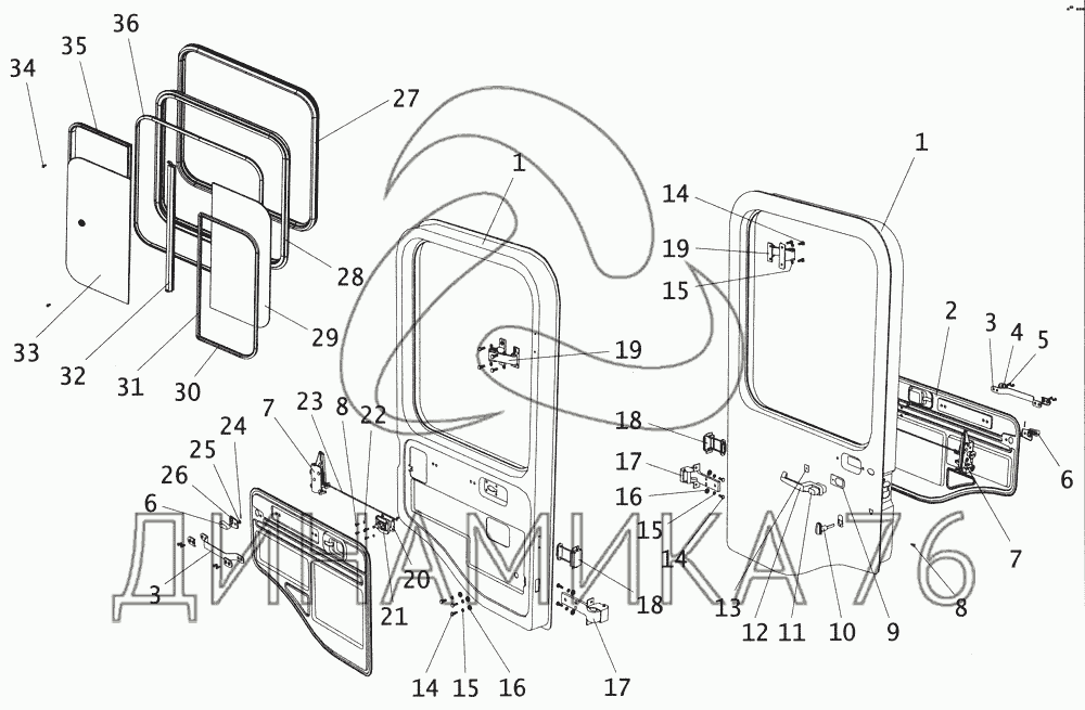 Схемы запчастей предназначены для справочных целей! Мы продаем не все запчасти от Дверь водителя с остеклением на ПАЗ-4234, представленные в этом списке.