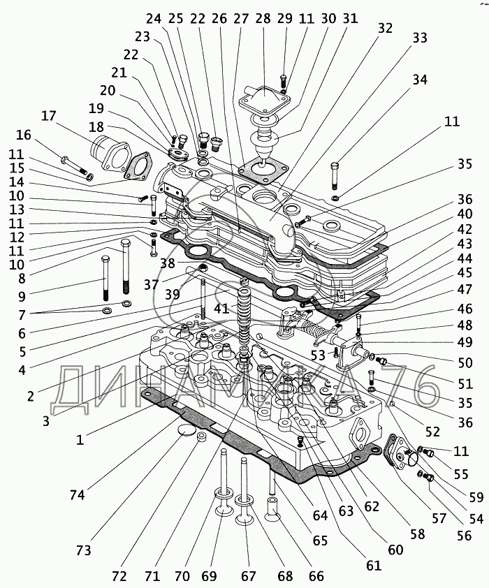 Перечень комплектующих от Головка цилиндров, клапаны и толкатели на ПАЗ-4234