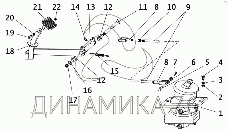 Перечень комплектующих от Механизм привода рабочих тормозов на ПАЗ-4234