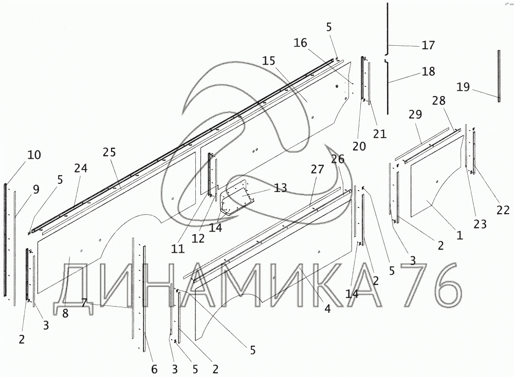 Схемы запчастей предназначены для справочных целей! Мы продаем не все запчасти от Обивка внутренняя правой и левой боковины на ПАЗ-4234, представленные в этом списке.