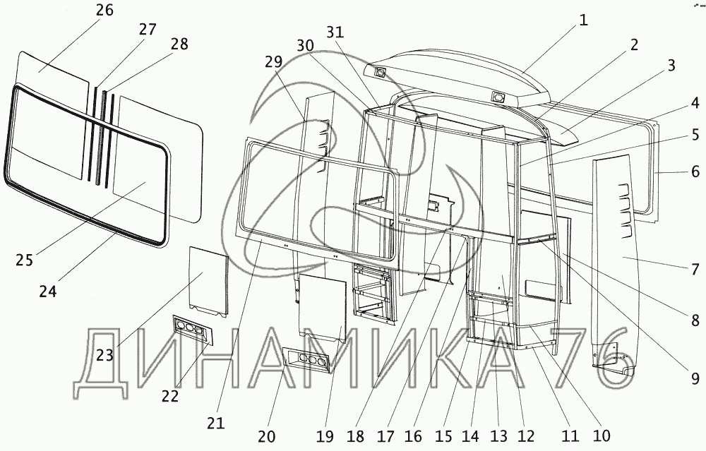 Перечень комплектующих от Задок кузова с остеклением на ПАЗ-4234