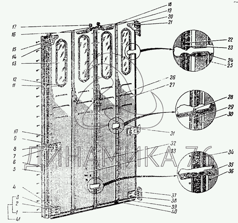 Перечень комплектующих от Дверь пассажирская на ПАЗ-672М