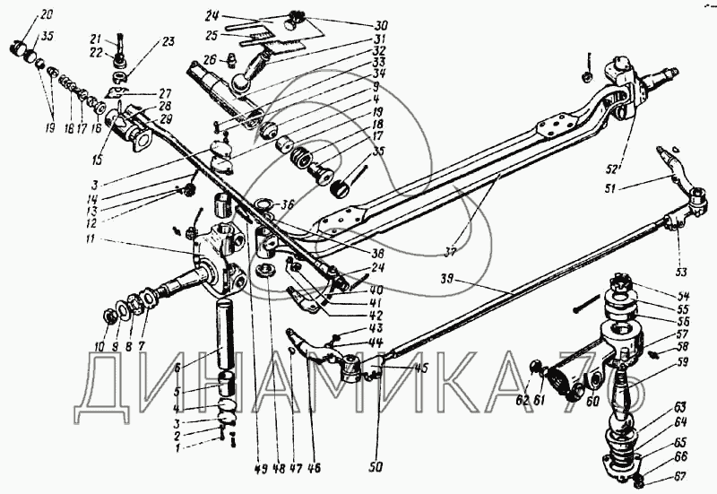 Ось передняя и рулевые тяги на ПАЗ-672М (до 1987 г.)