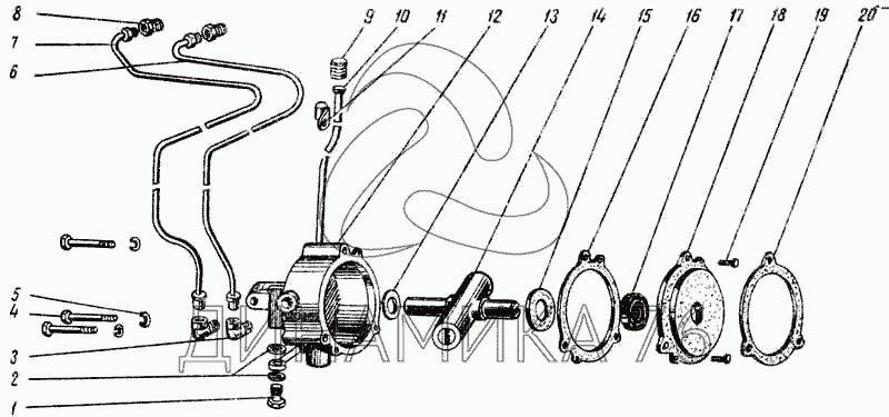 Перечень комплектующих от Пневмоцентробежный ограничитель оборотов на ПАЗ-672М