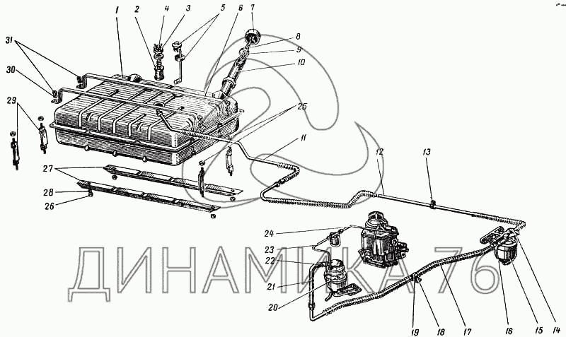 Перечень комплектующих от Топливный бак и топливопровод на ПАЗ-672М
