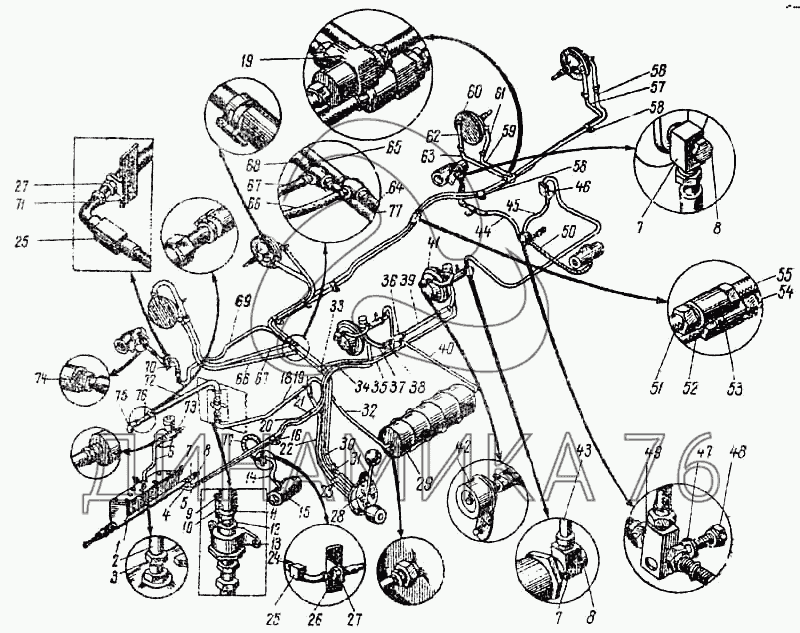 Перечень комплектующих от Трубопроводы гидротормозов и вакуумной системы на ПАЗ-672М
