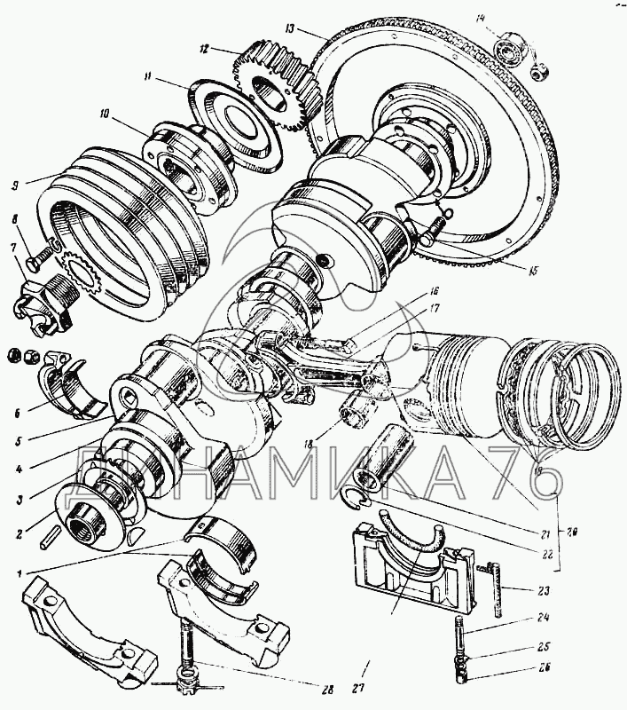 Вал коленчатый, поршни и шатуны — ПАЗ-672М: