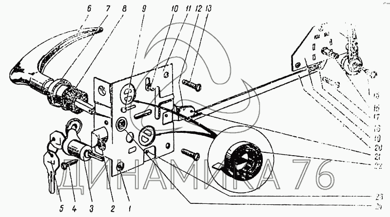 Перечень комплектующих от Замок двери кабины водителя на ПАЗ-672М