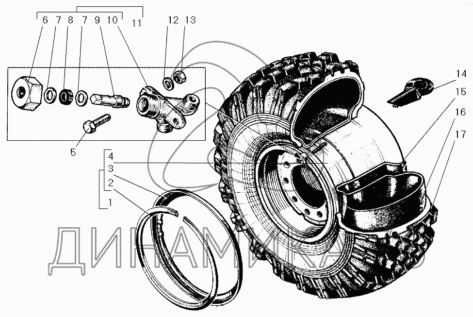 Схемы запчастей предназначены для справочных целей! Мы продаем не все запчасти от Колесо и шина на СПТС УРАЛ-32552, представленные в этом списке.