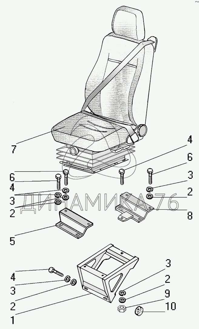 Перечень комплектующих от Сиденье водителя на СПТС УРАЛ-32552