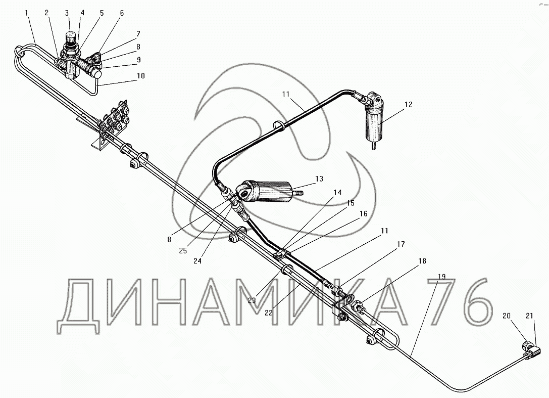 Перечень комплектующих от Система вспомогательного тормоза на СПТС УРАЛ-32552